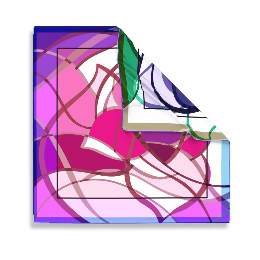 Printed on silk, the scarf offers a fluid drape and luminous finish on both sides. Whether styled with minimalist outfits or layered for impact, it adds a graphic, poetic touch to your wardrobe.