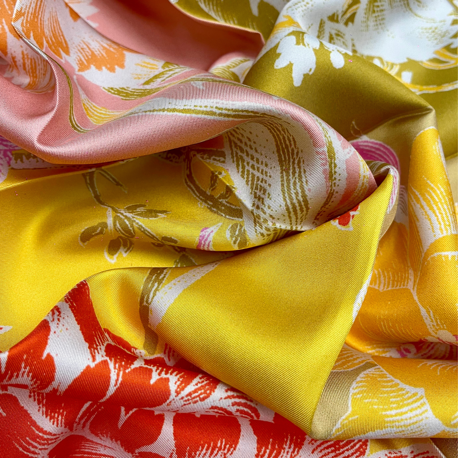 Now revived with contemporary flair, the design is printed on fine silk, radiating color and subtle movement. A statement piece that reimagines a timeless bloom through the lens of modern elegance.